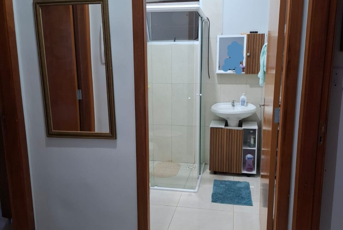 * Banheiro com *box e armário com espelho*